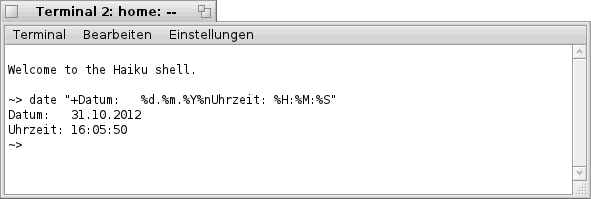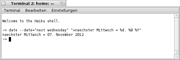 Leider übersetzt Haiku im Terminal die Tages- und Monats- Namen nicht, zumindest bei meiner "Alpha 3" nicht.