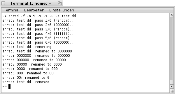 Als erstes sollte man ein "Terminal" starten und den Befehl