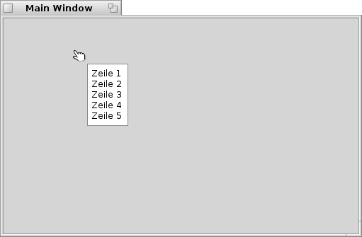 Mit einem kleinen Trick kann man den Text eines Tooltip aber auch in mehrere Zeilen aufteilen, was der Lesbarkeit durchaus zuträglich ist. Die Vorgehensweise ist dabei recht einfach. Man teilt den, zu langen, String in kleinere Portionen auf und hängt am Ende jedes einzelnen Teil- Strings einfach ein "chr$(10)" an (Beispiel 1). Alternativ dazu kann man auch ein "\n" anhängen (Beispiel 2), welches den selben Effekt erzielt. Das folgende kleine Beispiel zeigt dies.