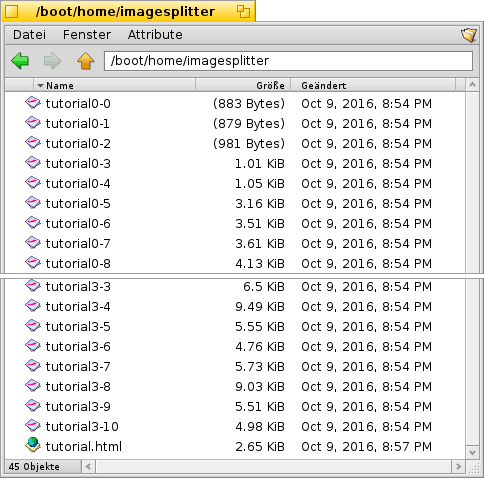 Wenn Du nun den Ausgabeordner öffnest, werden dort alle Einzelbilder und eine HTML- Seite angezeigt.