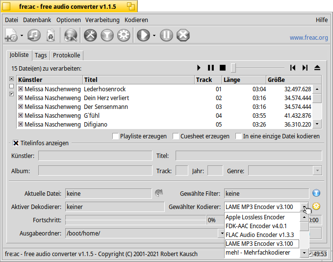Dann gehe auf Gewählter Kodierer und wähle dort den gewünschten MP3-Kodierer aus.