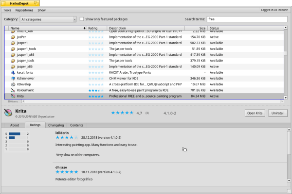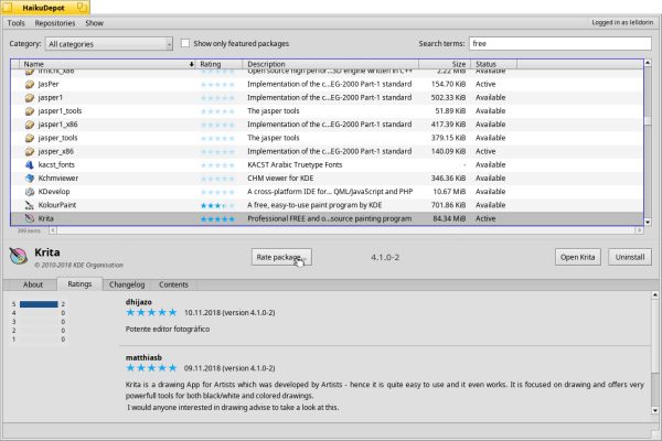 In dieser Anleitung möchte ich beschreiben, wie man Pakete über HaikuDepot bewertet.