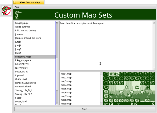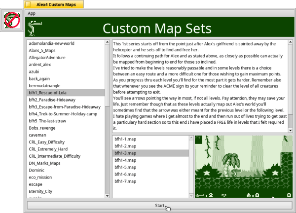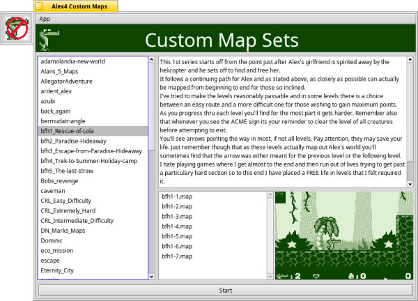 Alex4Customs ist eine Benutzeroberfläche zum verwenden und manipulieren von Custom Level-Sets für Alex the Allegator 4.