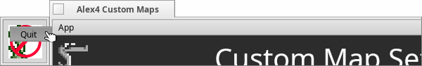 Momentan muss das Zusatzfenster einzeln beendet werden und wird nicht zusammen mit Alex4Custom geschlossen. Um dies zu tun gehen neben die Schaltfläche und drücke die rechte Mouse-Taste. Es erscheint ein Pop-Up Menü mit dem Quit Eintrag.