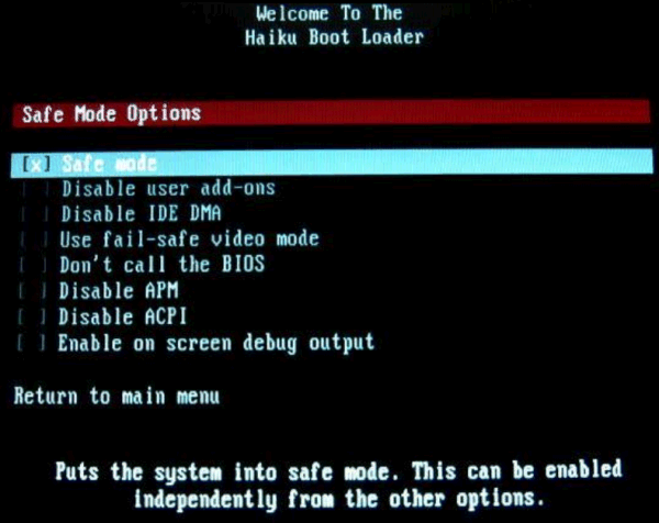 Sollte bei der Installation von Haiku Ihre Grafikkarte nicht erkannt werden, könnten Sie versuchen diese über den fail-safe video mode trotzdem zu nutzen.