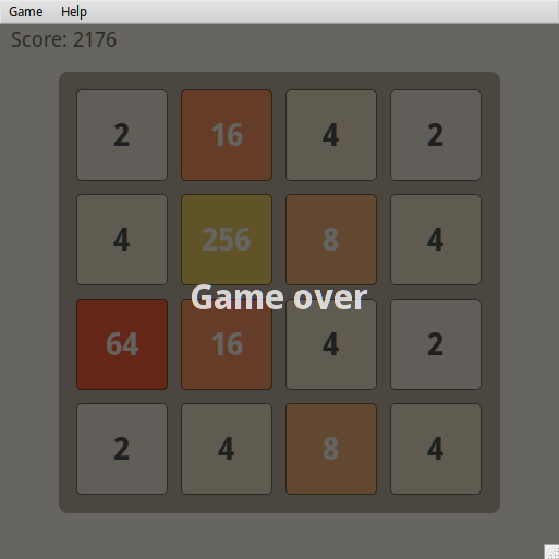 If the same numbers come together, they are added together. 4 and 4 become 8, 8 and 8 become 16, 16 and 16 become 32 ... ... 1024 and 1024 become 2048.