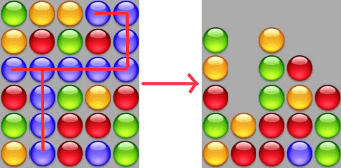 As already described at the beginning of the tutorial it is to remove about as many tokens as possible in the game. It is important that only contiguous, same-colored tiles may be removed. It does not matter how they are lined up, they just have to be right next to each other.