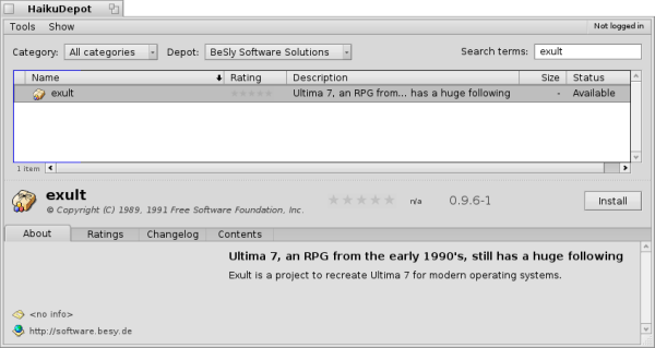 Now, open HaikuDepot over the Application menu and search for Exult.
