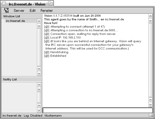 You see in the screenshots the IRC network irc.freenet.de. This network is the old place for the most beos channels. Any time the servers changed to the irc.freenode.org network, so the tutorial are changed to this server too.