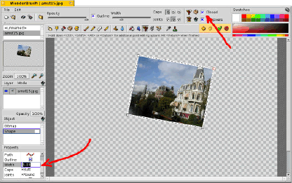 Shape un rettangolo inserendo quattro punti di controllo uno per ogni spigolo dell'immagine ed alla fine selezioniamo Closed per collegare il primo e l'ultimo punto; naturalmente possiamo cambiare il colore della linea ottenuta a piacimento però per quello che volgiamo fare il bianco va più che bene.