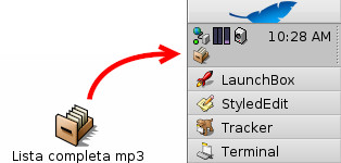 Come molti di voi ricorderanno dalla passata esperienza con BeOS é possibile aggiungere qualsiasi applicazione, cartella, query, link o documento come replicante nella Deskbar tray, semplicemente dando da terminale il seguente comando:
