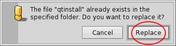 Icon-o-Matic inform you that this file allready exists, click on Replace because you want to save the icon-data as attribute to the binary