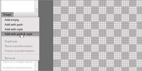 This creates a Shape, a Path and a Style. Since you have to link this components together so that you can change them at the same time or assign a color to objects, a cross must be placed in front of the components. This will be made here atomatically.