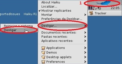 Etapa 26: No momento em que quiser desligar o sistema operacional basta clicar no menu (1) e ir até "Desligar..." e clicar em "Desligar".