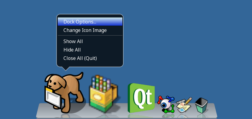 If you select an icon with the mouse and instead of left-click, right-click, a pop-up menu is opened.Dock Options… opens the HiQDock settings window