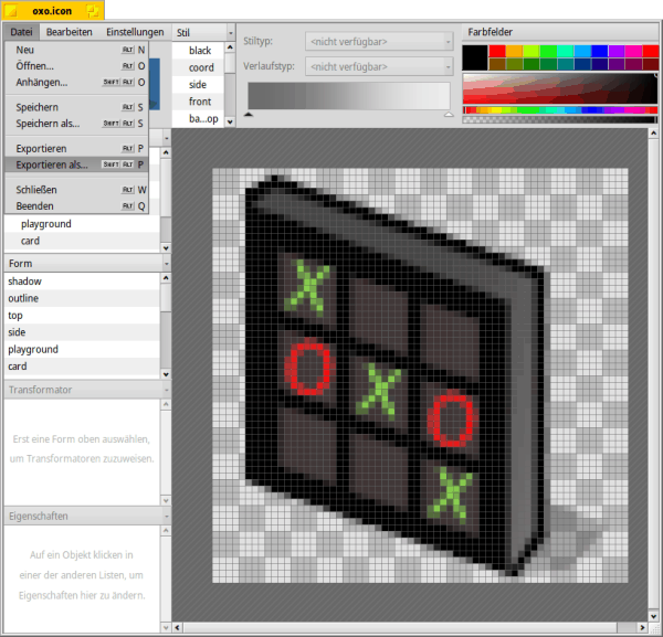Here is another tip regarding the SVG icons. To get better program icons that look less pixelated in the menu bar, open Icon-o-matic and drag the corresponding program (executable program file) onto Icon-o-matic.